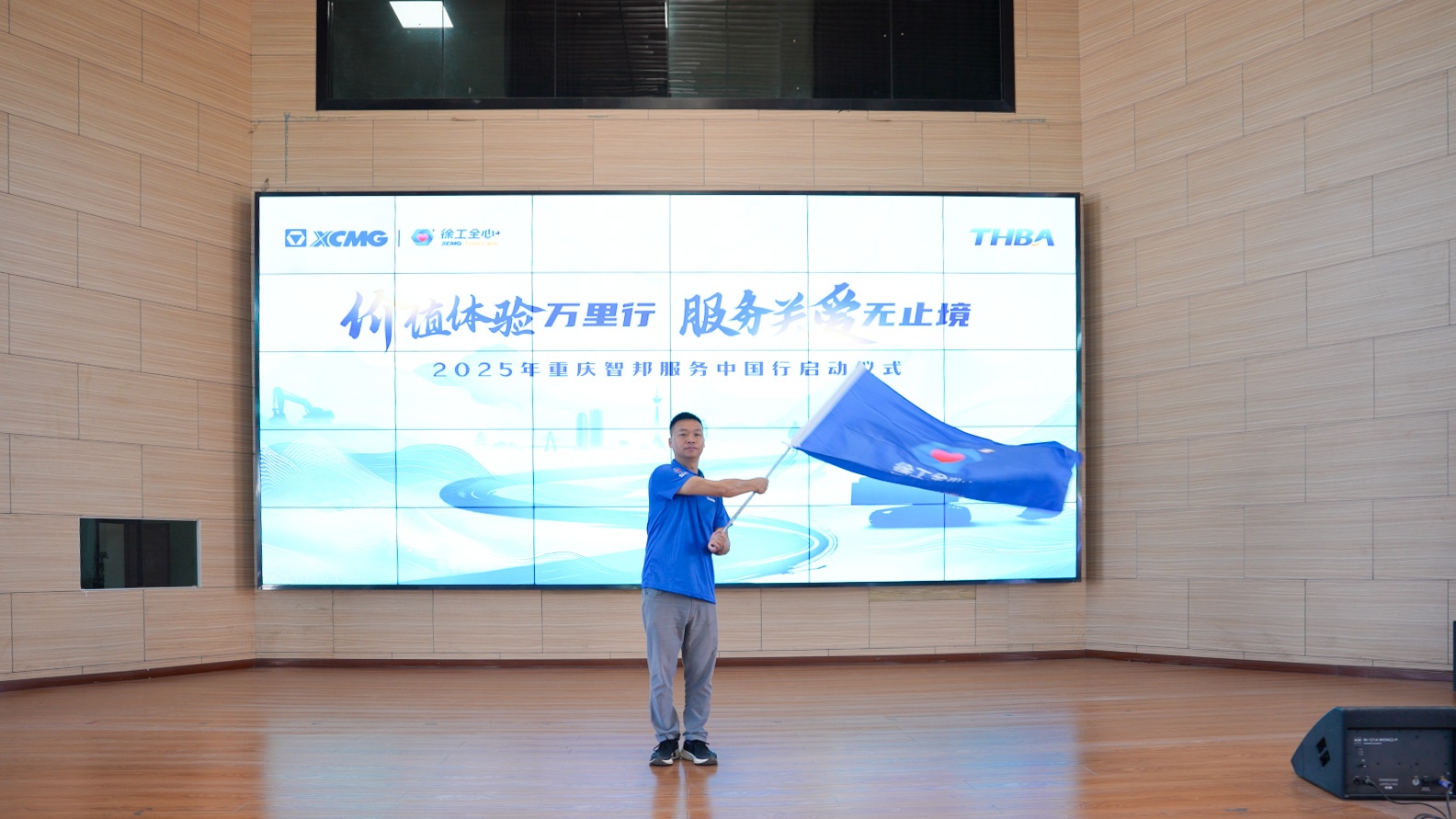 匠心致遠(yuǎn),奮楫篤行向未來。在激昂的樂曲聲中,服務(wù)中國行授旗儀式莊嚴(yán)舉行。徐州徐工挖掘機(jī)械有限公司駐重慶服務(wù)經(jīng)理張旭將這面承載著責(zé)任與擔(dān)當(dāng)?shù)钠鞄?,鄭重授予重慶智邦工程機(jī)械管理有限公司服務(wù)總監(jiān)張勇手中。接過旗幟的張總目光如炬,雙手緊握旗桿,也握住了萬千客戶的信任與期待。飄揚(yáng)的旗幟下,是智邦人"服務(wù)至上"的堅(jiān)定誓言,是"精益求精"的工匠精神,更是對"中國制造"品質(zhì)承諾的永恒堅(jiān)守。這一刻,榮耀與責(zé)任同在,初心與使命同行!