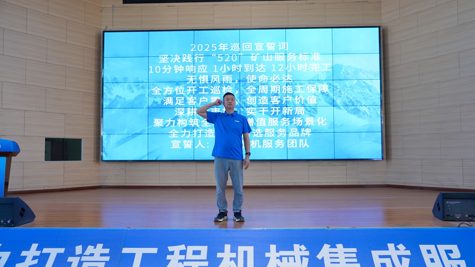 錚錚誓言聲聲入耳、字字入心。張總帶領(lǐng)服務(wù)團(tuán)隊(duì)莊嚴(yán)宣誓:“堅(jiān)決踐行“520”礦山服務(wù)標(biāo)準(zhǔn),10分鐘響應(yīng),1小時(shí)到達(dá),12小時(shí)完工;無懼風(fēng)雨,使命必達(dá),全方位開工巡檢,全周期施工保障,滿足客戶需求,創(chuàng)造客戶價(jià)值;深耕后市場,實(shí)干開新局,聚力構(gòu)筑全心+,增值服務(wù)場景化,全力打造行業(yè)首選服務(wù)品牌”這一刻,堅(jiān)定的眼神交匯成信念的星河,嘹亮的聲音匯聚成前進(jìn)的號角。誓言既出,使命必達(dá)!智邦服務(wù)精英將駕乘服務(wù)車輛,在市井深處,在郊區(qū)鄉(xiāng)野,在每一個(gè)徐工挖機(jī)能到達(dá)的地方……向著初升的朝陽方向延伸,讓服務(wù)的光芒照耀更遠(yuǎn)的地方。