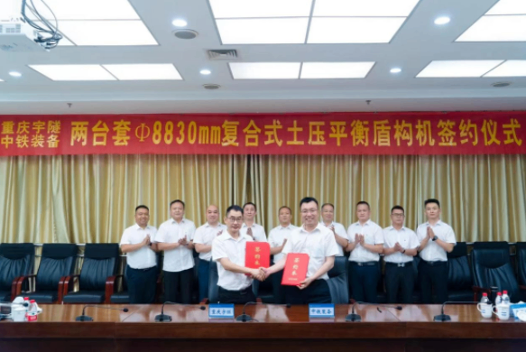 6月23日,中鐵裝備集團與重慶智邦集團——重慶宇隧交通設(shè)備有限公司在鄭州舉行兩臺φ8.83米復(fù)合式土壓平衡盾構(gòu)機采購簽約儀式。